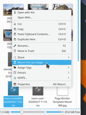 Talking of usability improvements, Dolphin has always let you mount and explore remote shares, be it via FTP, SSH, or other protocols. But now Dolphin shows remote and FUSE mounts with user-friendly display names rather than the full path. Even better: You can also mount ISO images using a new menu item in the context menu. This means you can download and explore a file system you will later burn to a disk or USB stick.