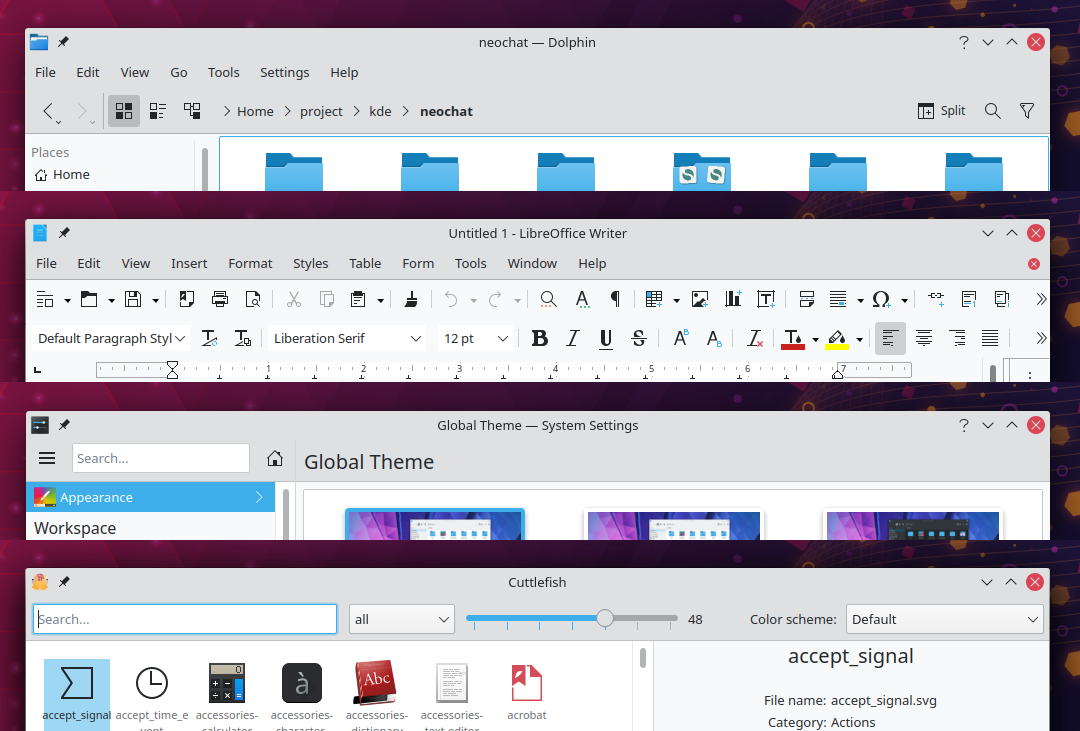 بصرف النظر عن التحسينات العديدة في الاستقرار، هناك عدد غير قليل من مكونات بلازما التي تحصل على دعم أفضل بكثير في Wayland. على سبيل المثال، يستطيع KRunner الآن إدراج جميع النوافذ المفتوحة في Wayland، وندعم الآن الميزات المطلوبة لـ GTK4، لذا ستعمل تطبيقات GTK4 الآن.