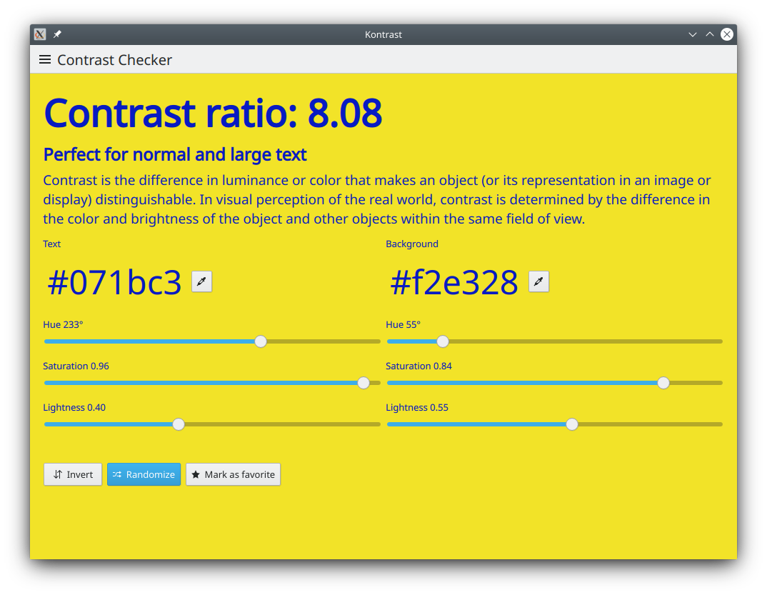 أداة وصول جديدة هذا الشهر هي تباين. إنها مدقق تباين الألوان ويخبرك ما إذا كانت مجموعات الألوان الخاصة بك سهلة الوصول للأشخاص الذين يعانون من نقص في رؤية الألوان.