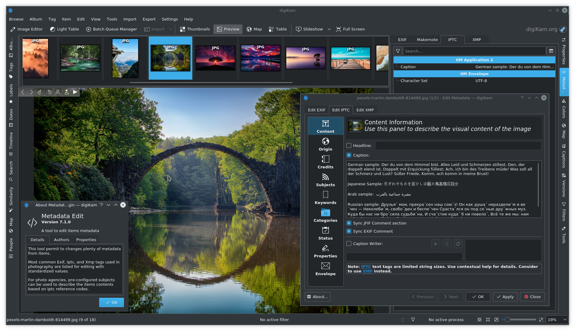 دعم أفضل لبيانات Canon CR3 الوصفية، غالبًا ما تكون تنسيقات صور RAW من الكاميرات غير موثقة ويصعب معالجتها. كتب مطورو digiKam 7.1.0 واجهة بيانات وصفية تستند إلى libraw لـ CR3، والتطبيق قادر الآن على قراءة جزء كبير من أوسمة Exif، بما في ذلك معلومات GPS، وتشكيلة الألوان، وبالطبع حاويات IPTC و XMP القياسية.