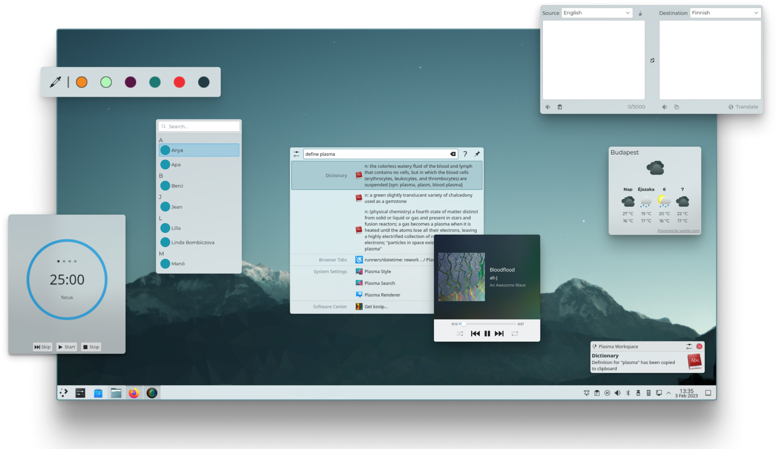 You can customize your desktop with widgets, like a calculator; clock and calendar to keep track of time; clipboard manager; dictionary; weather report; application launcher, and more.