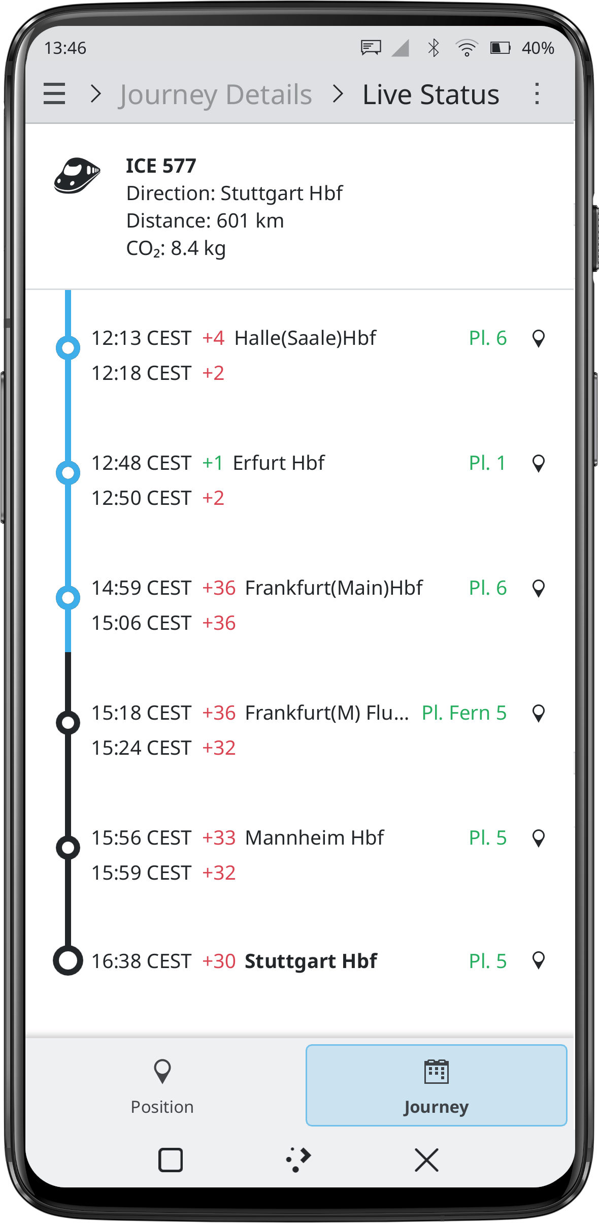 在支持的火车和长途巴士上,行程规划应用还将使用车载 API 来获取车辆的实时状态,并向您更新您当前的位置以及任何通知。
