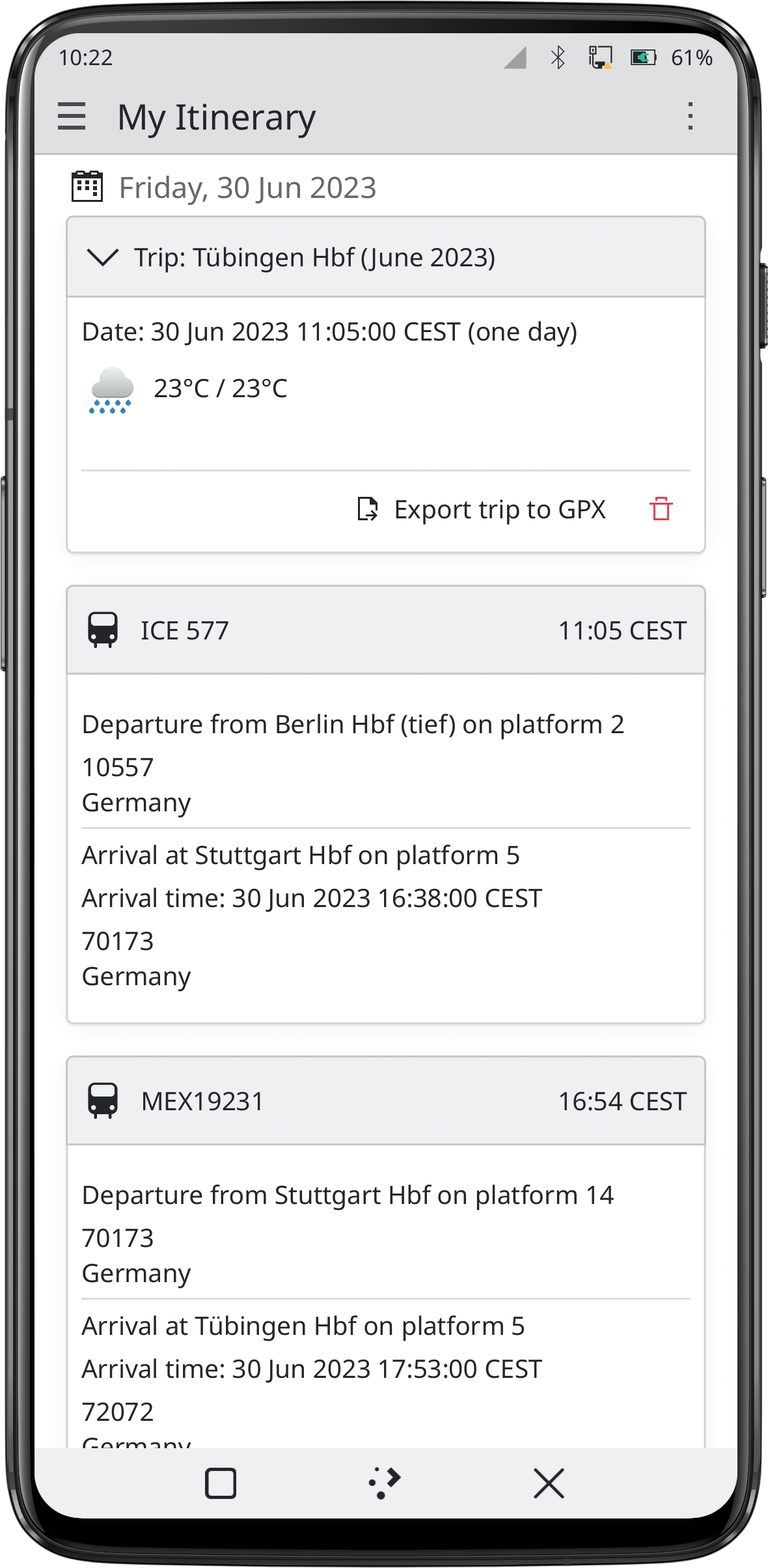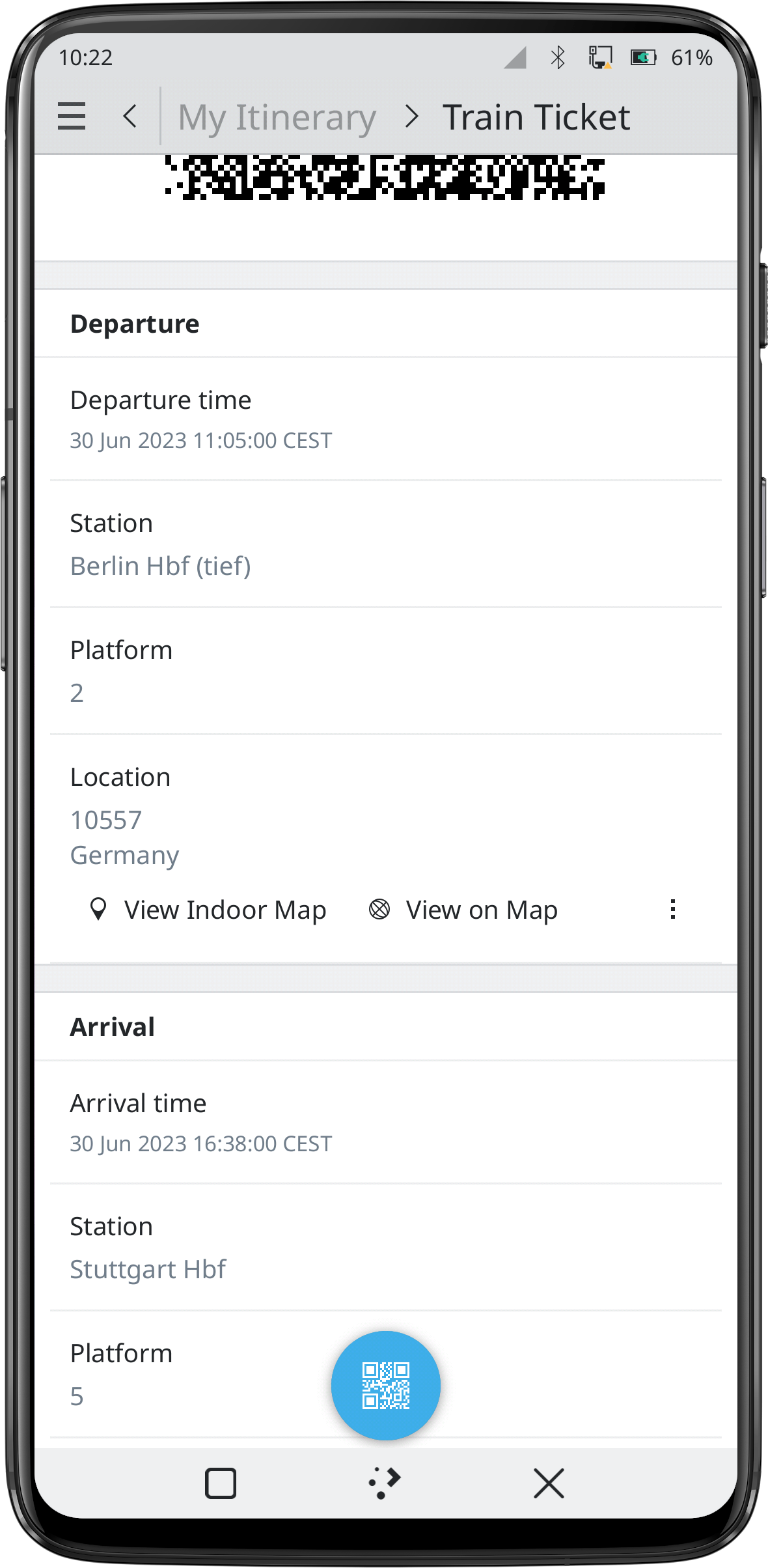 将您的所有预订信息都保存在行程中。包括二维码、办理登机手续时间、到达时间、实时延误情况、座位预订、车厢布局等等。