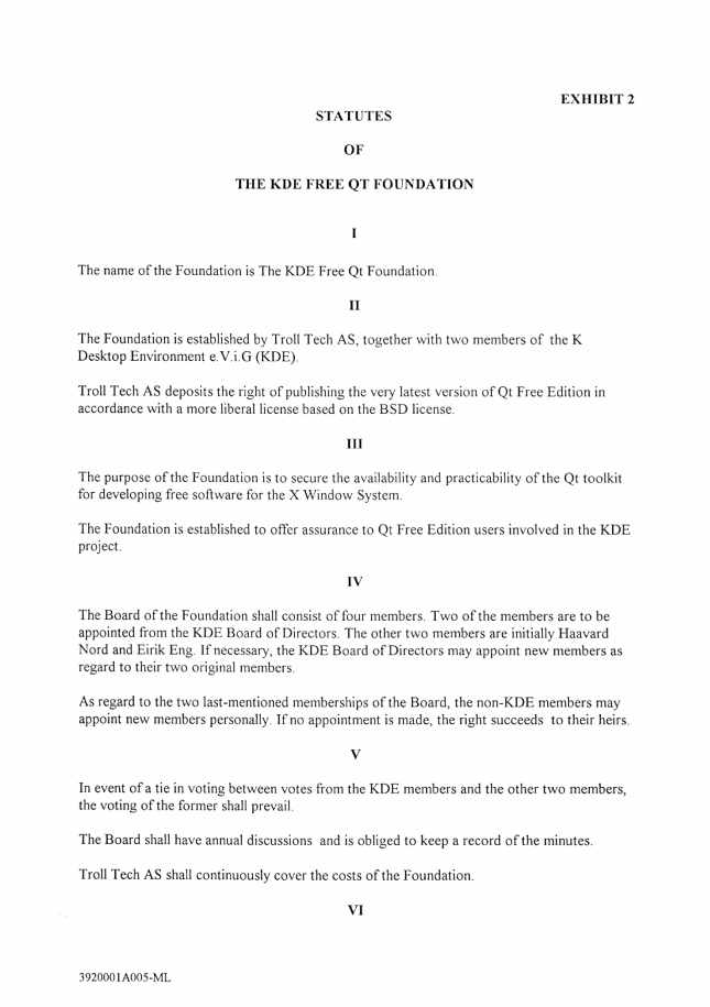 Original KDE Free Qt Foundation Statutes (Exhibit 2): page 5, page 6