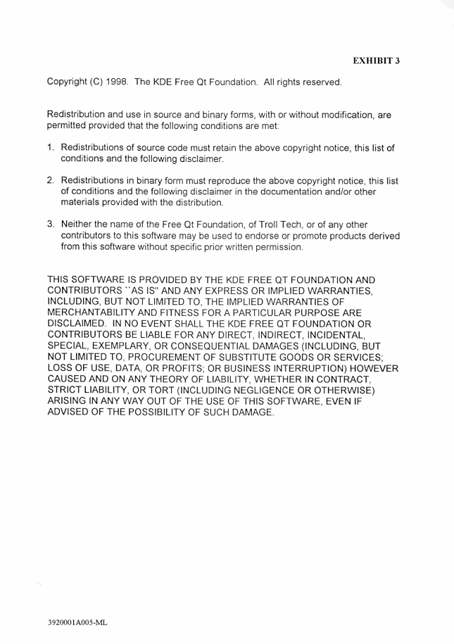 Qt Free Edition license (Exhibit 1): page 3, page 4