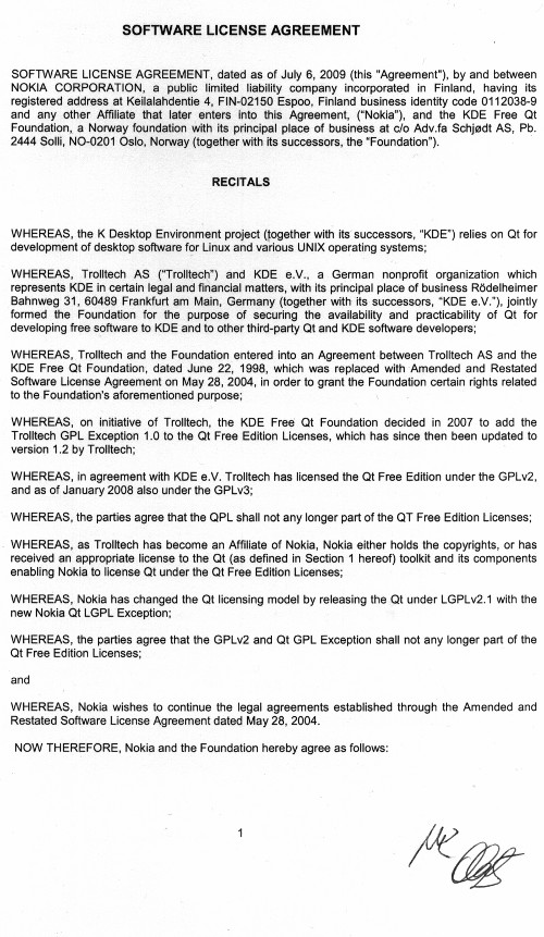 The foundation has signed a new agreement with The Qt Company (11 MiB; as text 301 KiB).